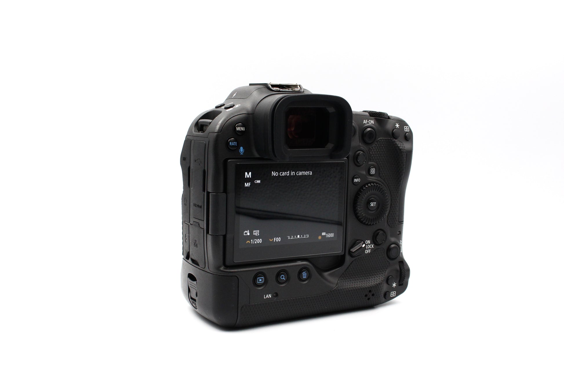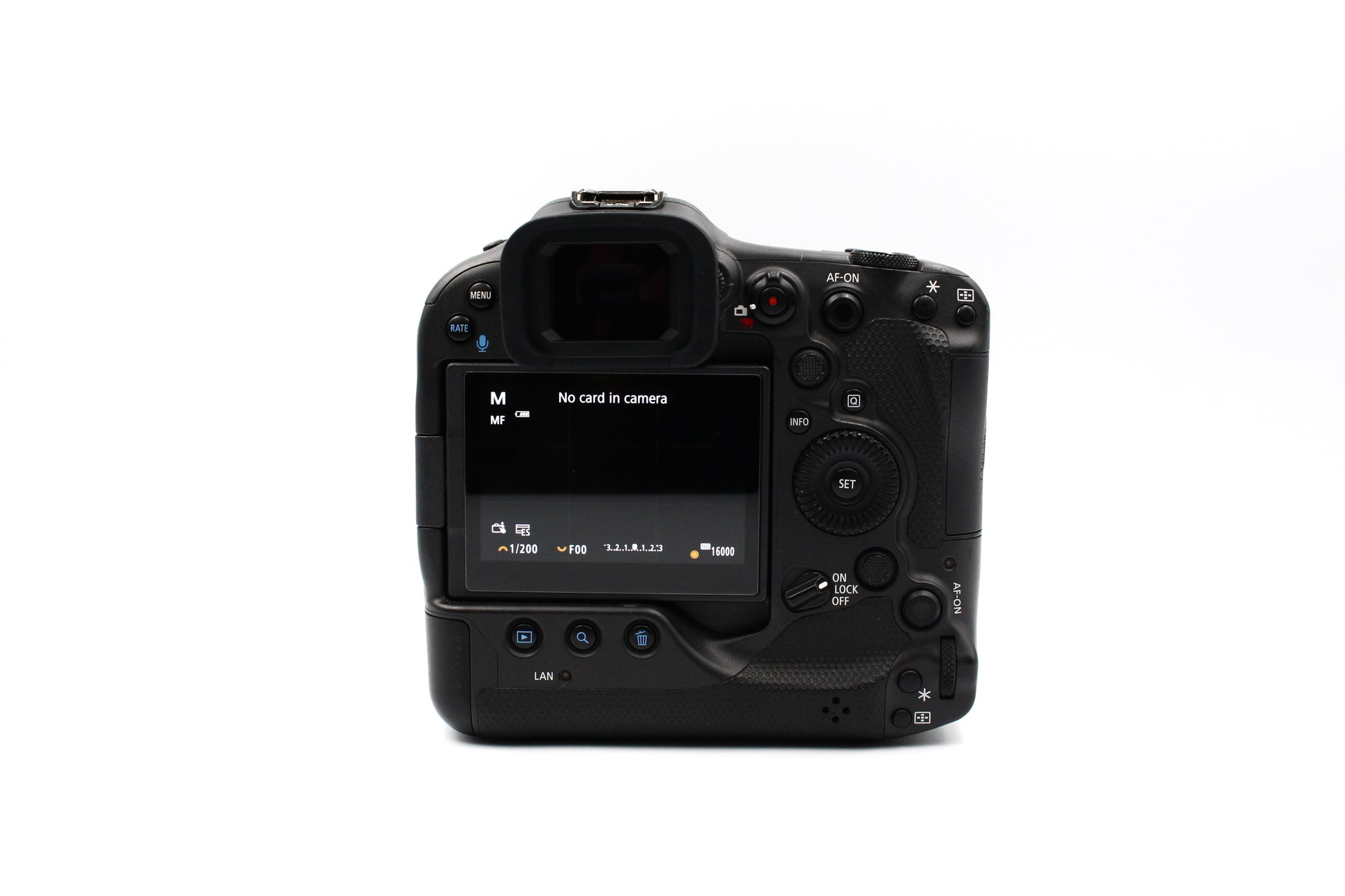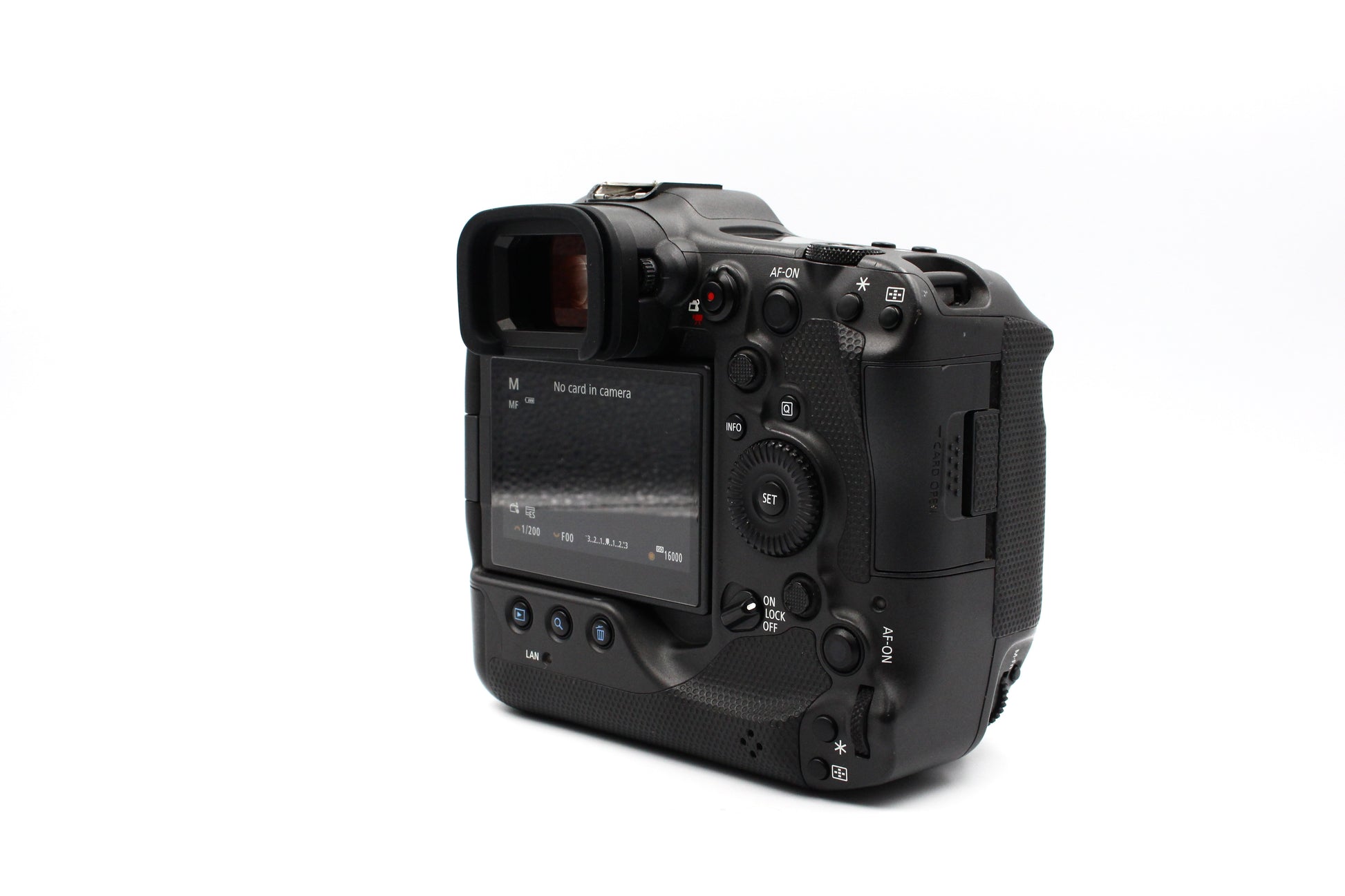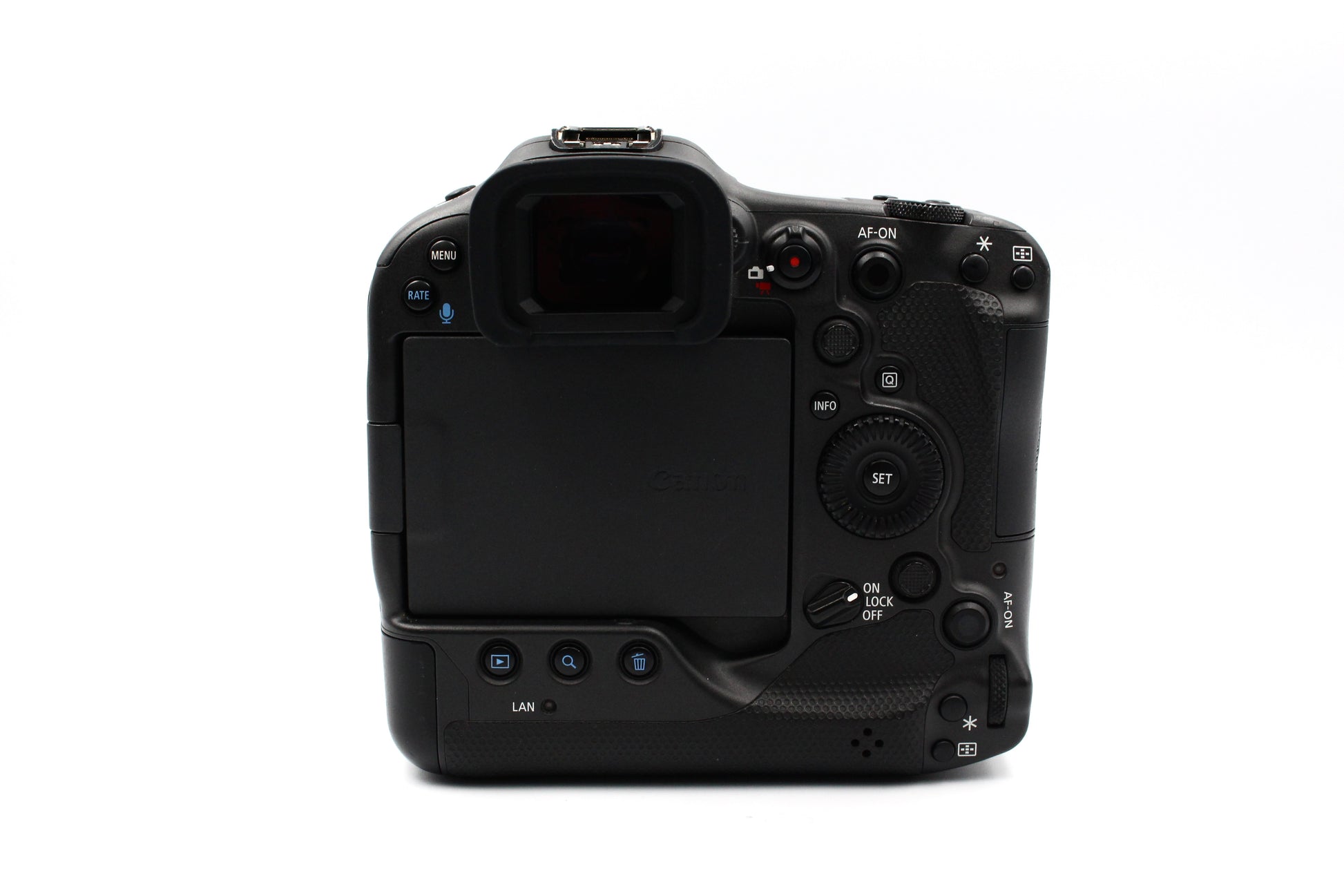 The Canon EOS R3 is a professional full-frame mirrorless camera designed for speed, durability, and precision. It features a 24MP stacked sensor, rapid 30fps electronic shooting, advanced Eye-Controlled AF for intuitive focus selection, excellent low-light performance, in-body image stabilization, and robust weather-sealed construction. Ideal for sports, wildlife, and demanding professional work.