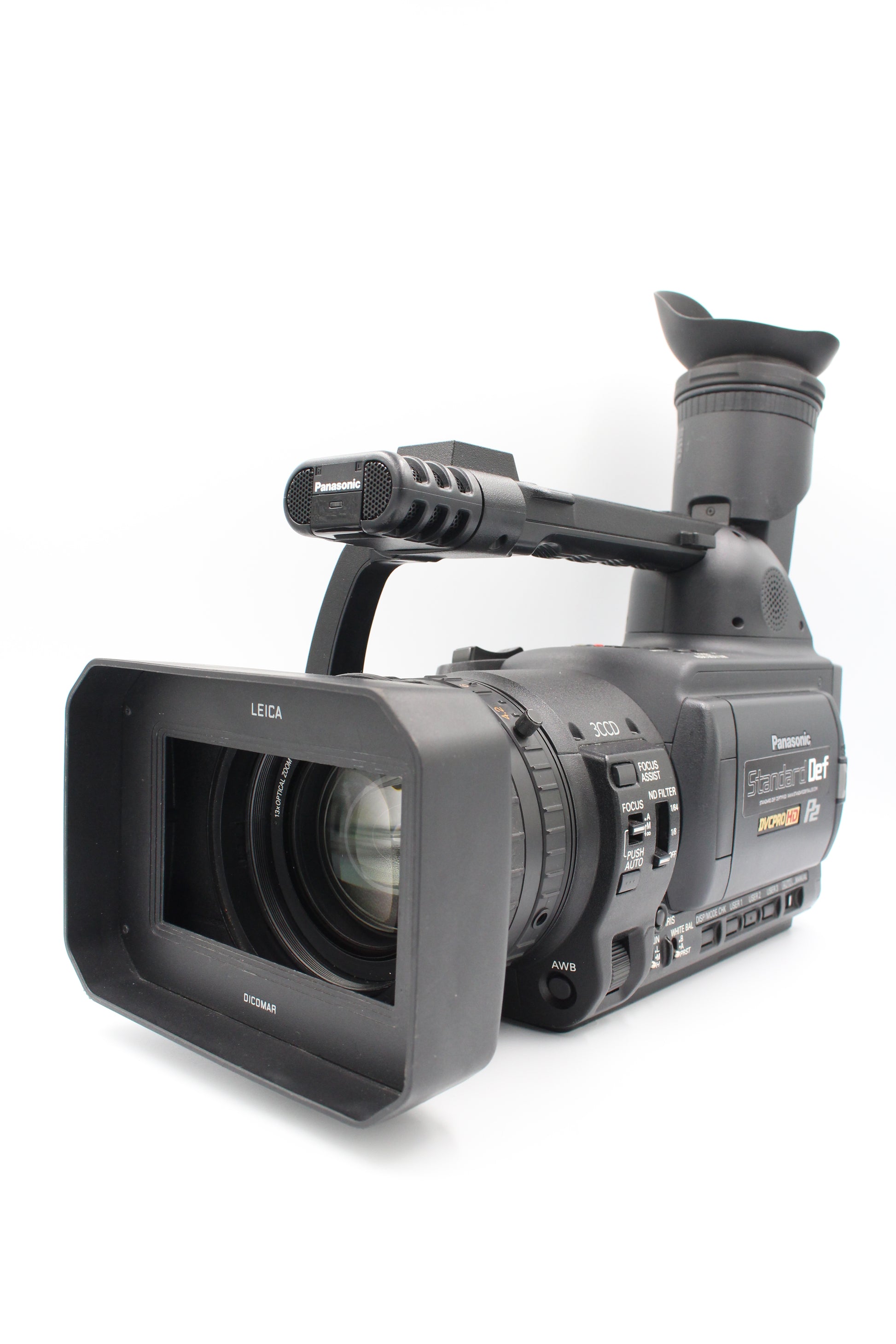The Panasonic AG-HVX201AE is a versatile P2 and MiniDV camcorder that bridges the gap between tape and tapeless workflows. It records in DVCPRO HD, DVCPRO50, DVCPRO, and standard DV formats, giving users flexibility for both SD and HD production. Featuring three 1/3-inch CCD sensors, a Leica Dicomar lens, and professional manual controls, it delivers sharp, cinematic image quality. With dual recording options to P2 cards or MiniDV tape, the HVX201AE is a reliable choice for filmmakers transitioning into HD production.