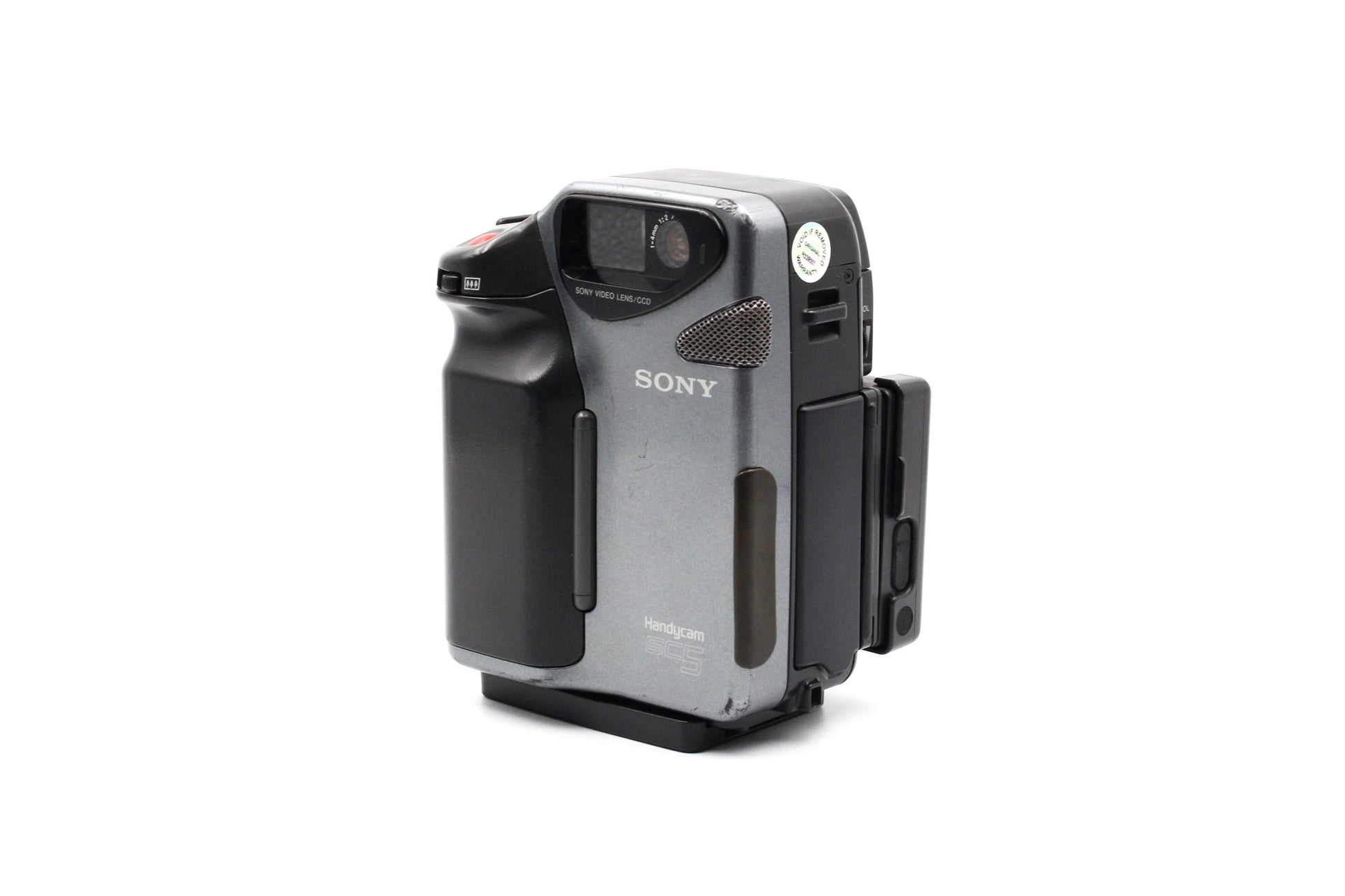 The Sony CCD-SC5E is a PAL Video8 analog camcorder known for its distinctive vertical design, which made it more compact and easier to hold than traditional horizontal camcorders. It records onto standard 8 mm tapes using a 4-head helical-scan system and offers both viewfinder and flip-out LCD monitoring. Powered by a 7.2 V battery or AC adaptor, it combines portability with solid analog video performance for home recording.