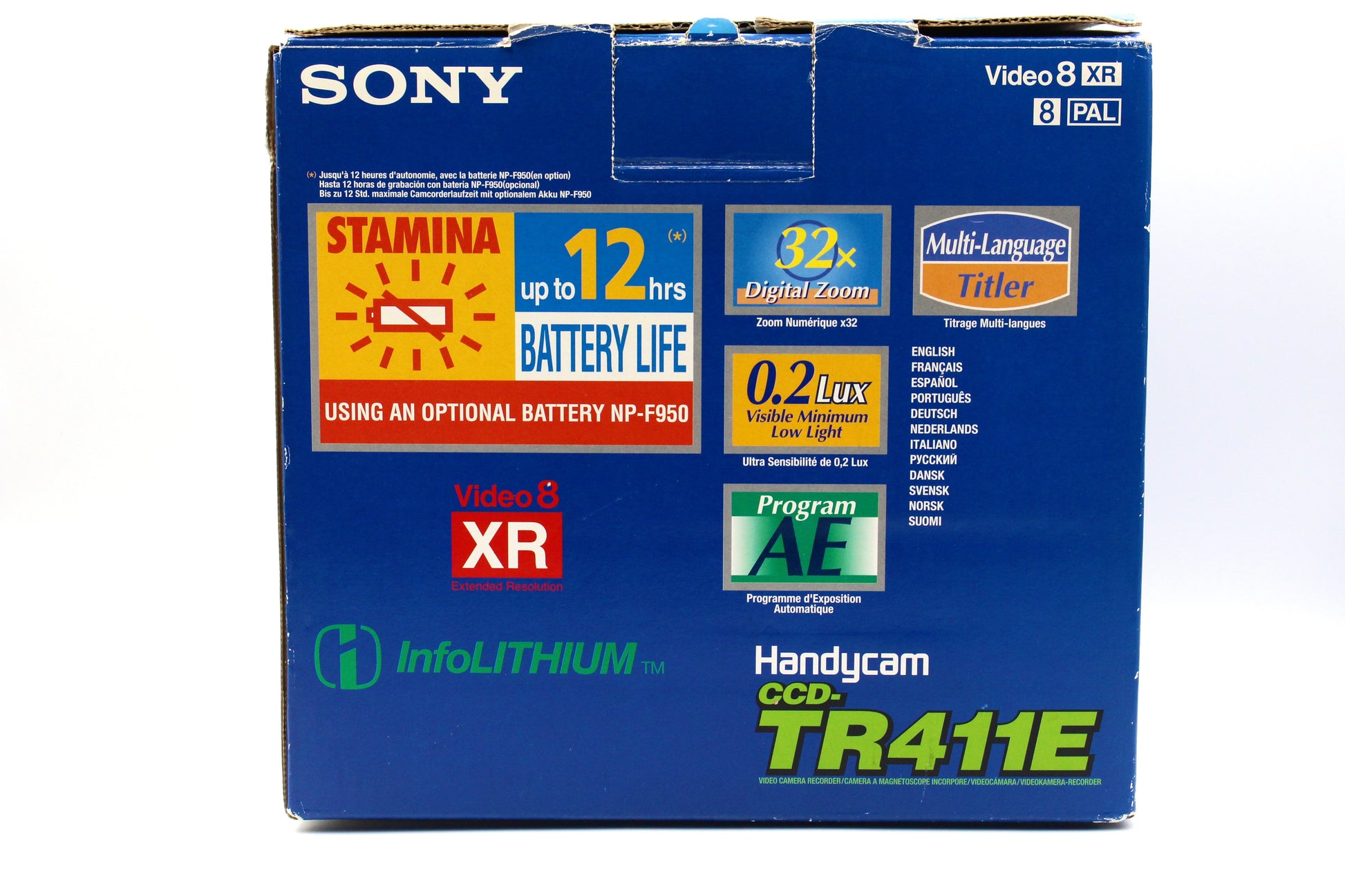 The Sony CCD-TR411E is a compact PAL Video8 (and Hi8-compatible) camcorder from the late ’90s. It features a motorised optical zoom (16×) plus digital zoom extension, records to standard Video8 tapes, runs on a 7.2 V rechargeable battery (or AC adapter), and weighs around 800 g, offering a good blend of portability and home-video functionality.