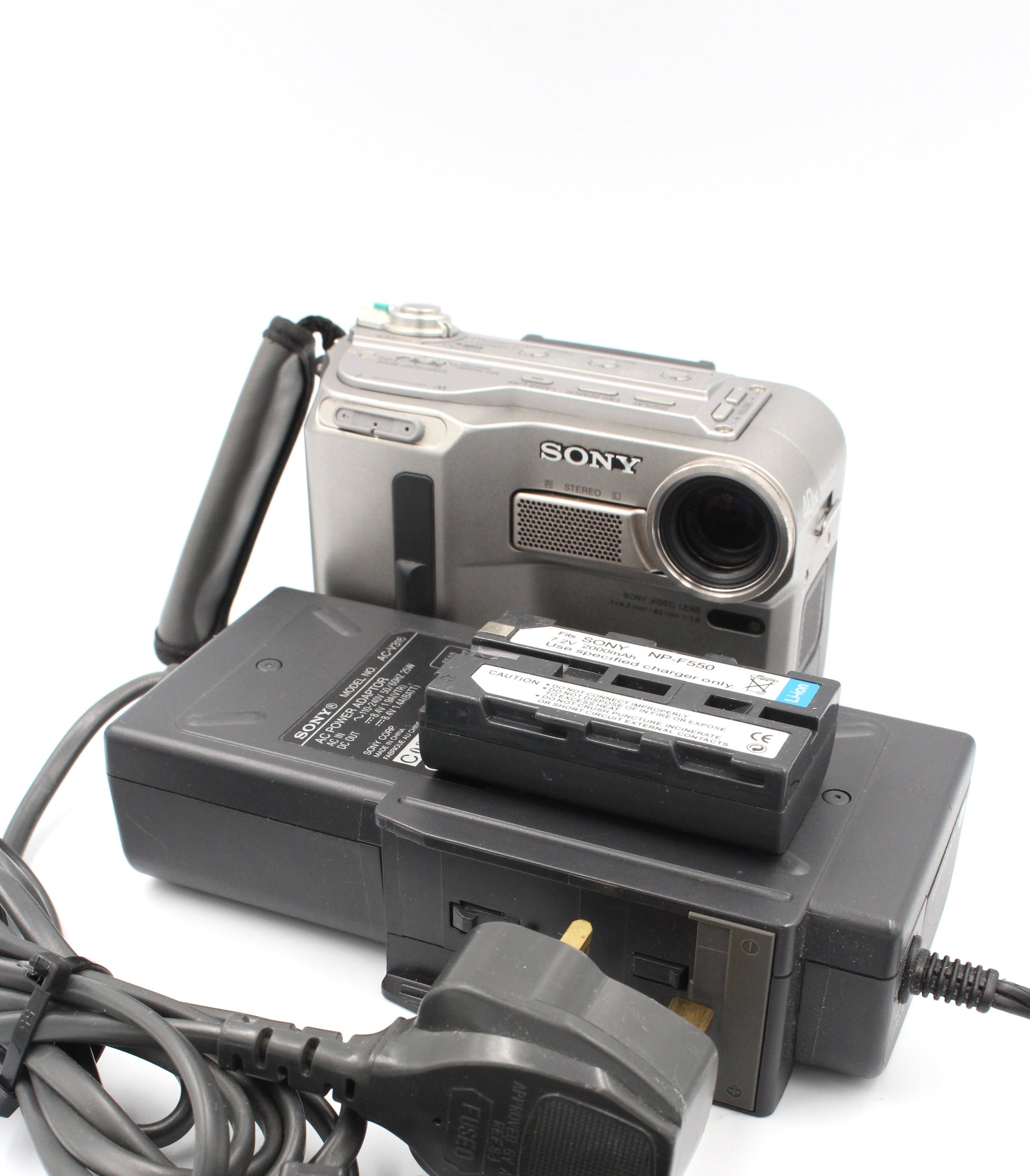 Includes: 1x Sony DCR-PC9E, 1x NP-F550 Battery, 1x AC Adaptor Battery Charger
