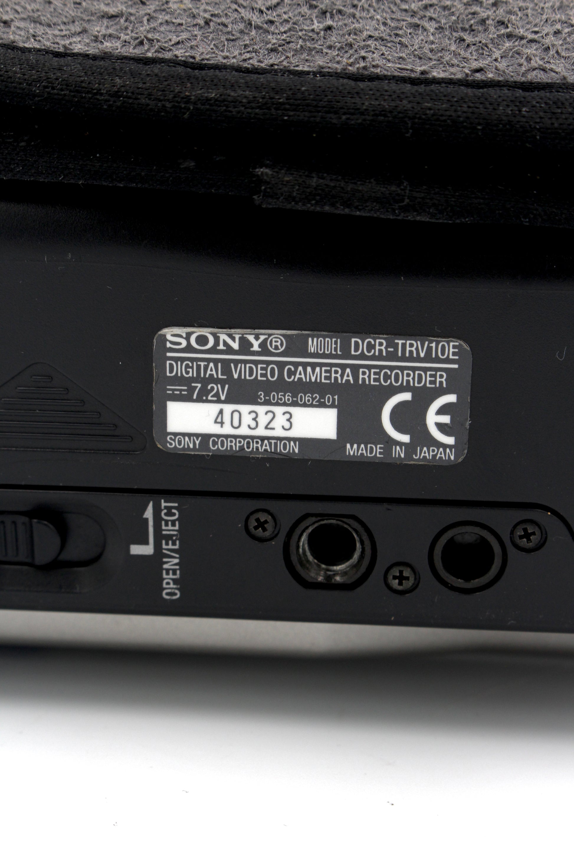 The DCR-TRV10E is a compact tape-based camcorder using the HDV/MiniDV format (PAL) with a 1/4″ CCD sensor. It features a 10× optical zoom lens (with digital zoom beyond), a 3.5-inch LCD screen, built-in stereo microphone, and analog/digital interfaces including DV output. It weighs about 650 g (body only) and can record up to about 1 hour on a DVM60 cassette in SP mode.
