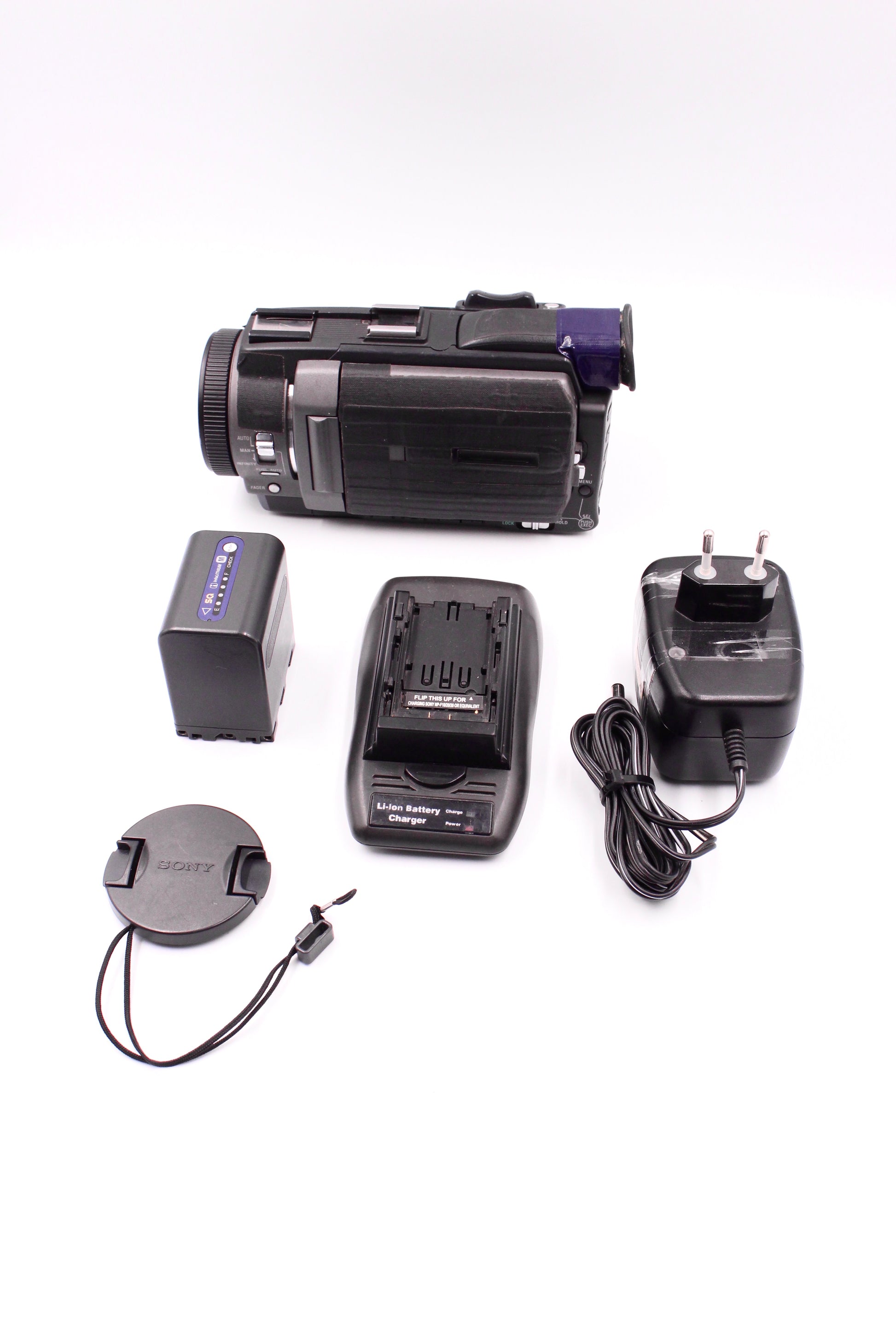 Includes: 1x Sony DCR-TRV950E, 1x Sony NP-QM91D Battery, 1x Third Party NP-QM91D Charger, 1x Power Cable (EU Plug), 1x Lens Cap.
