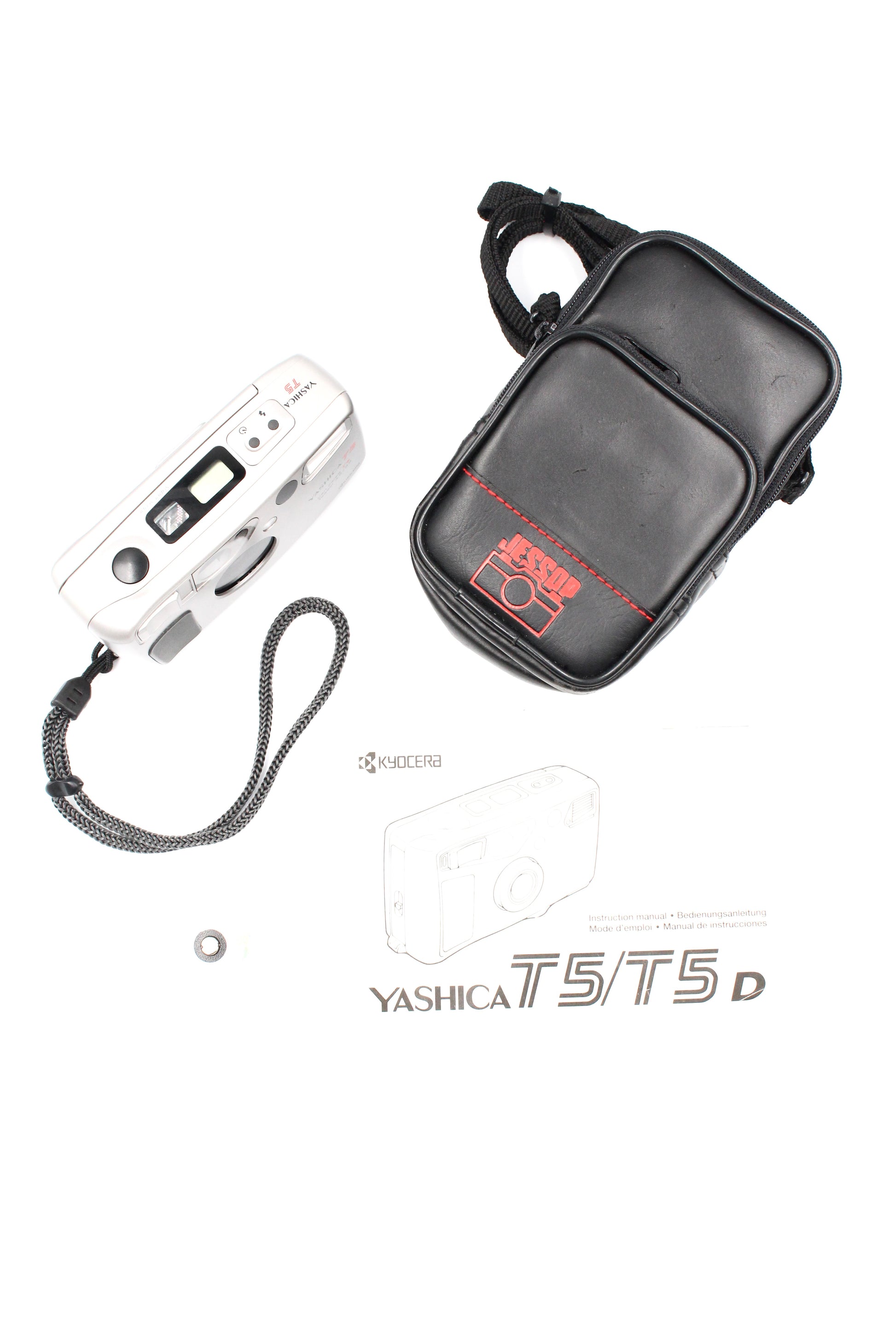 Includes: 1x Yashica T5 Super 35mm Carl Zeiss T* Lens Film Camera, 1x Jessop Camera Bag, 1x Third-Party CR123A Battery, 1x Yashica T5 Original Manual.