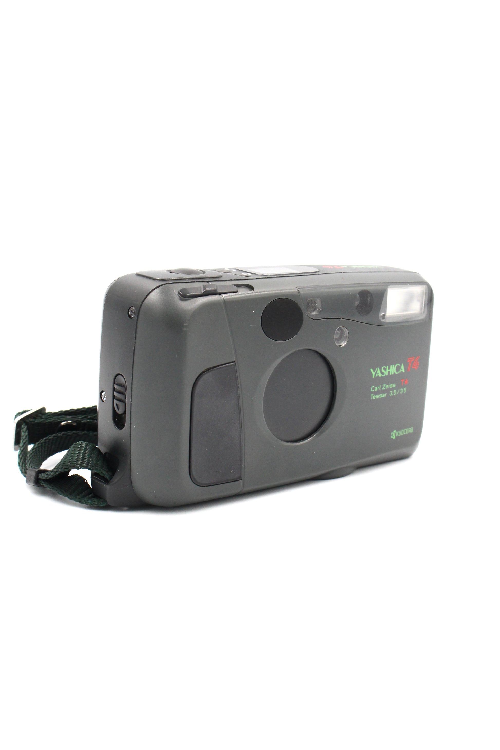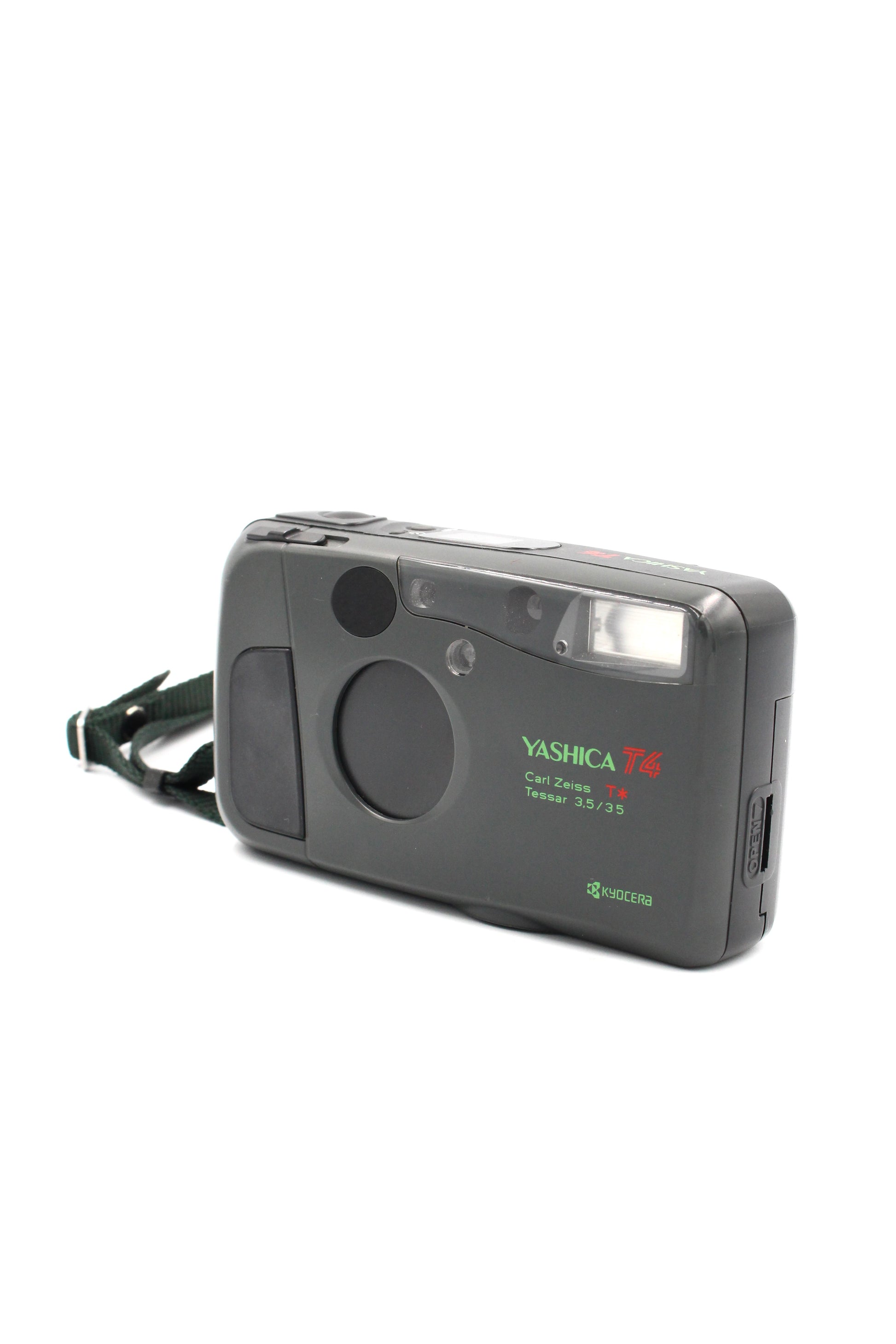 The Yashica T4 is a compact 35mm film camera known for its sharp Carl Zeiss T* 35mm f/3.5 lens, simple automatic operation, and sleek, durable design. Loved by enthusiasts for its high-quality images and ease of use, it’s a classic point-and-shoot that combines portability with premium optical performance.